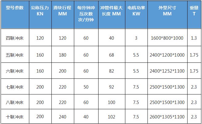 2.沖床參數表: